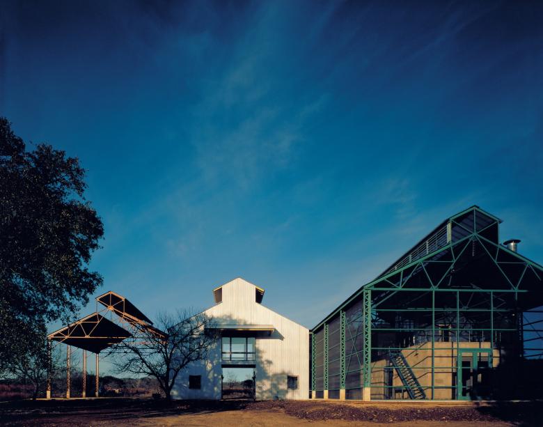 Lake graduated from the University of Texas at Austin in 1977, where he met his mentor, the pioneering architect O’Neil Ford, who brilliantly combined modernist and regionalist ideas. From 1978 he was on his own, running a design-build practice in the Texas panhandle, building experimental sodbusters and sod houses for farmers with his own hands. After completing a couple houses, he realized he needed more experience, so he went to work for his mentor and met his future partner there. He likened their encounter to “a juxtaposition of wills.” They had just the right amount of friction and competition to provoke collaboration. Lake told me, “At first, we did not see eye to eye. If I wanted round windows, Ted wanted square ones.” Soon, however, they realized they shared the same instincts; they believed in modernism and accentuated regionalist qualities.