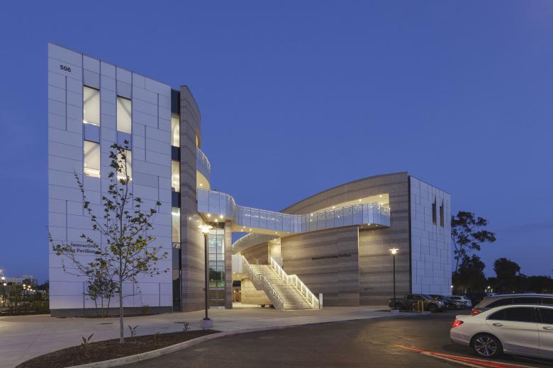 As far as how it's influencing our work moving forward, we do a lot of higher-ed work, and for the reasons I mentioned it is very helpful. I'd also say that because so much of this building is outdoors, it is very unique in the way the architecture, the systems, and the spaces all work together. In a way, it is more like a piece of infrastructure than a traditional building. We do a lot of what we call urban infrastructure projects: train stations, bridges, highway lids, community spaces. The thinking about the outdoor public space in this project is parallel to the things we investigate on other projects. For instance, the ILP has two bridges — literally and technically bridges —through the open-air space, so we had to figure out how the detailing works, the materials work, the guardrail works, how all these elements come together to create a civic place.