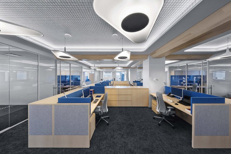 Next to the typical menu items (About, Projects, Press, Contact) on the website of Schiller Projects is something different: Workplace Strategy. How does Schiller's firm find the best fit for a particular company? In their words: "Our approach combines our team’s capacity for spatial and design thinking with data analytics and measurement." Put simply, they spend a lot of time doing data-heavy analysis before they even tackle design. A mix of research and data collection that consists of site observation, facilities review, employee surveys, workshops, interviews, and other things results in a custom report that expresses the client's current state of affairs and their future potential. The report informs the subsequent design idea but also extends to pieces like the touchscreens at BSF, which can be used to do post-occupancy evaluations and even point to areas for office reconfiguration.