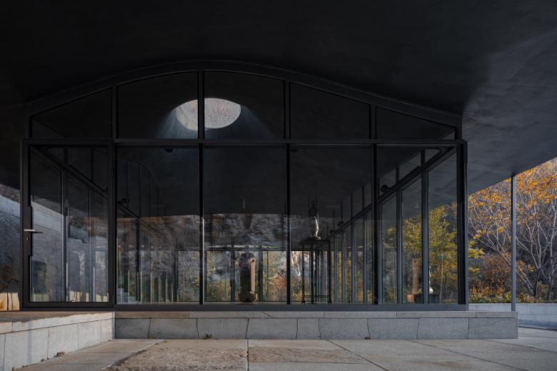 It is true that I tend to explore the use of new structures and materials to bring contemporary technic or innovation to the project. The roof of the Zen Hall at the Upper Cloister corresponds to traditional wooden architecture. Since the pavilion roof is supported by extremely thin steel columns, we looked for lightness and slenderness in the form, which is inspired by the curved roofs of traditional wooden architecture. At some angles it may be more similar to the traditional roof, and in other directions it may evoke other associations. I like such ambiguity. The curved roof shell was ultimately built using a smart robotic arm and CNC carving combined with carbon fiber structural technologies. Since the project is in the mountains, the only way to ensure quality construction was with prefabrication. I brought in a digital fabrication team and designed the new building system with AND Office. I was fully involved throughout the construction process, as many details had to be resolved on site. On the construction site, there were still many errors for which the architects had to find a solution, including the surface paint, for which a satisfactory result was found after numerous experiments.