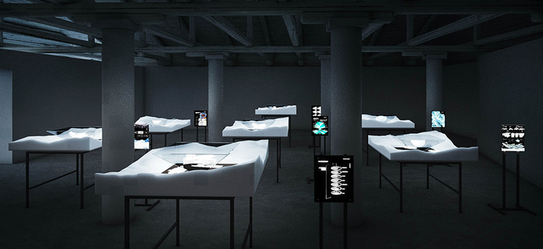 The 65 national pavilions represent countries on six continents – all but Antarctica. Curator Nadim Samman sees the frozen continent as a cultural place and this installation (existing outside of the official programming in the small, un-palatial Fondaco Marcello overlooking the Grand Canal) displays projects by Hani Rashid (of Asymptote Architecture) and the Institute of Architecture, University of Applied Arts Vienna. The projects deal with practical issues – food production, technology infrastructure, scientific research, energy production – that yield fantastical forms clearly sprung from the working in the computer environment. The designs are displayed through videos and hologram-like projections within a darkened room – a dramatic display that makes them looking convincingly correct in their icy context.