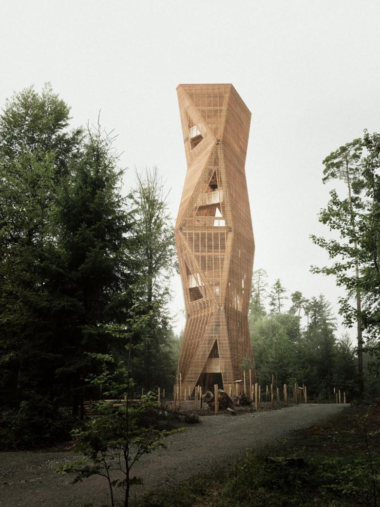 Nadja: A tower like this one is something spectacular in itself. During the design process, we quickly realized that perspectives and the geometric shapes are of immense importance due to the height of over 40 meters (131 feet). Much more than usual, we worked with models to develop a deeper understanding of the tower's appearance. Yet despite all the tests on the model, we were surprised and touched when we eventually saw the finished structure and walked up it for the first time.