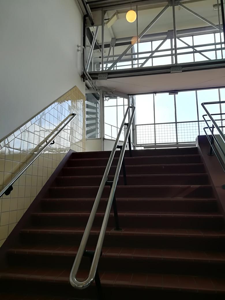 The design of the stairwells is also modernist and minimalist. (Photo © Cornelia Ganitta)