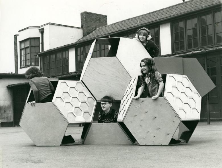 "Tetrakaidecahedral" by Victor J. Papanek, 1973-1975, a movable playground structure, designed with a student, parents, teachers and children. (Photo © University of Applied Arts Vienna, Victor J. Papanek Foundation)