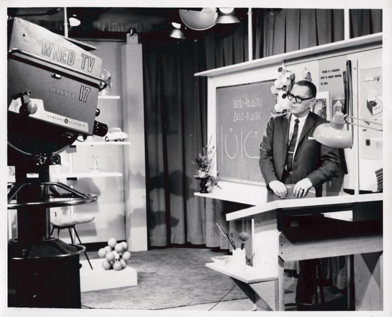 Papanek filming the WNED-TV Channel 17 program "Design Dimensions" in Buffalo, NY, 1961–1963 (Photo © WNED-TV, courtesy Victor J. Papanek Foundation)