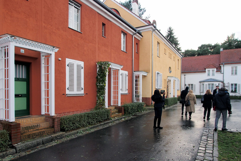 According to WAF director Paul Finch, "We decided to organize more building visits as part of our quest to improve the event for all our delegates." This year's festival offered at least a dozen tours, including one organized by World-Architects: "Colorful Modernism," which visited two Bruno Taut projects well outside the central city. Led by Carsten Sauerbrei of Berlin's architekTour B, the tour stopped first at Falkenberg Garden City in Treptow, one of six modernist Berlin housing estates that were added to the UNESCO World Heritage List in 2008. Also known as a "paintbox estate" – as it appeared that Taut raided the paintbox in coloring the buildings and their details – the name of the tour was made immediately clear. The tour then stopped at Hufeisensiedlung Britz (Horseshoe Estate), which was built according to the plans of Taut and Martin Wagner from 1925 to 1933 in what is now Berlin's Neukölln district. Executed on a grander scale than Falkenberg, but with fewer splashes of color, the project is notable for its horseshoe plan and its inclusion in the same UNESCO listing.
