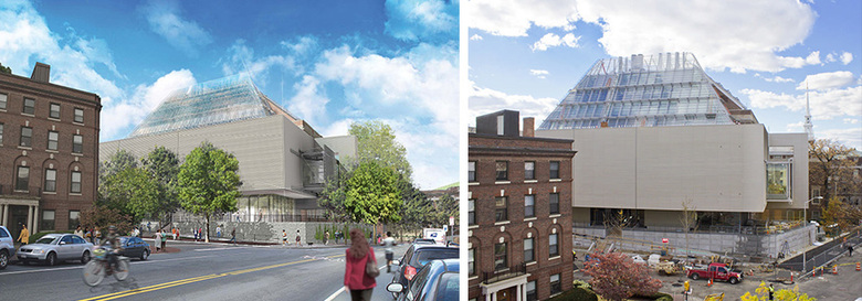 Here we note a few projects that are expected to be completed next year, with each project documented with a rendering on the left and a construction photo on the right. Of course, things have a way of changing in architecture and construction, so please don't be upset with us next year if these buildings aren't done!