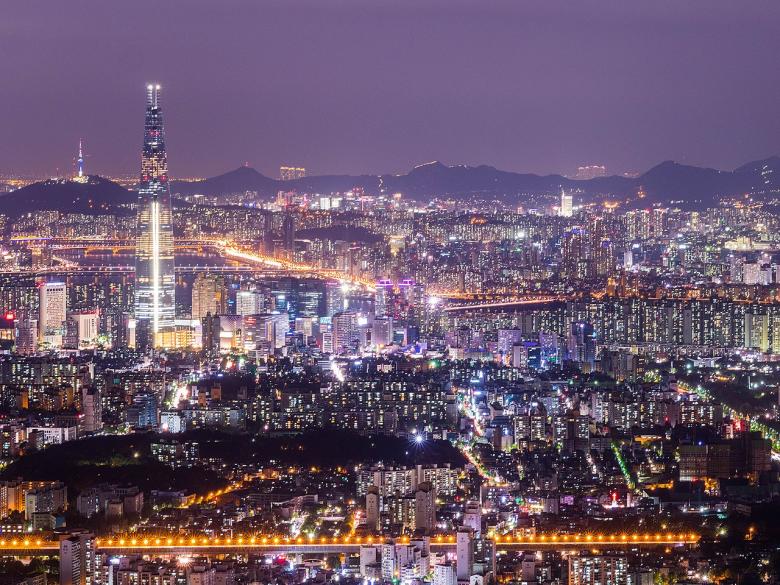 ...while South Korea is the least affordable, at $12,989 (€11,841) per square meter. (Photo: Seoul at night by Joon Kyu Park/Wikimedia Commons)