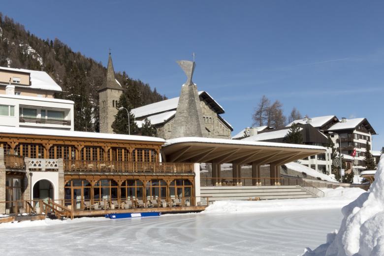 ...and most recently the Kulm Eispavillon, the restoration of a pavilion formerly used for two Winter Olympics and addition of a restaurant, terrace, and multipurpose pavilion. (Photo: John Hill/World-Architects)