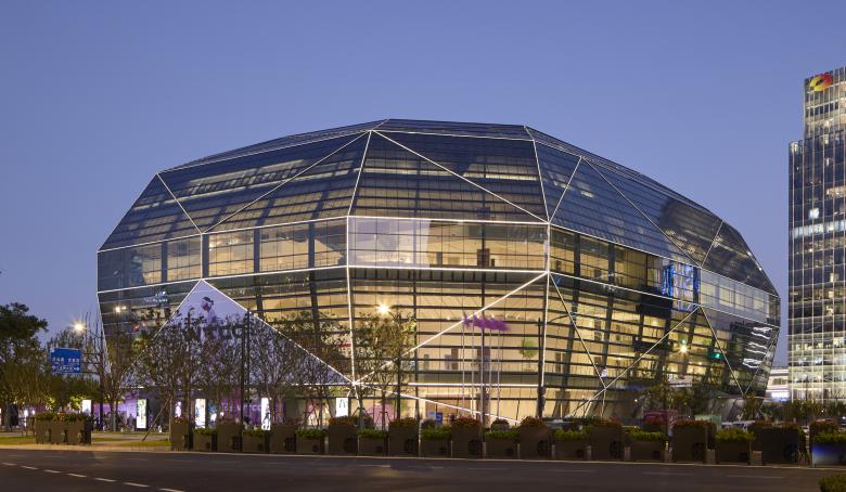 According to SOM, “The resulting form—a crystalline glass volume that gleams by day and fades to black at night—balances performance with precision.” (Photo: Lucas Blair Simpson © SOM)