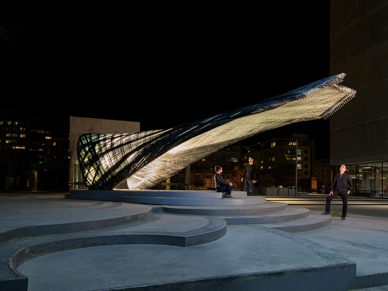 The pavilion may have surpassed its 12-meter length if it were fabricated on site, but given the off-site fabrication the lightweight structure had to be sized for transport – all in one go given the wound-fiber construction. Nevertheless, the latest ICD/ITKE creation is an impressive one, like something from a not-too-distant future, when nature is the model and technology is the tool for shaping our environment.