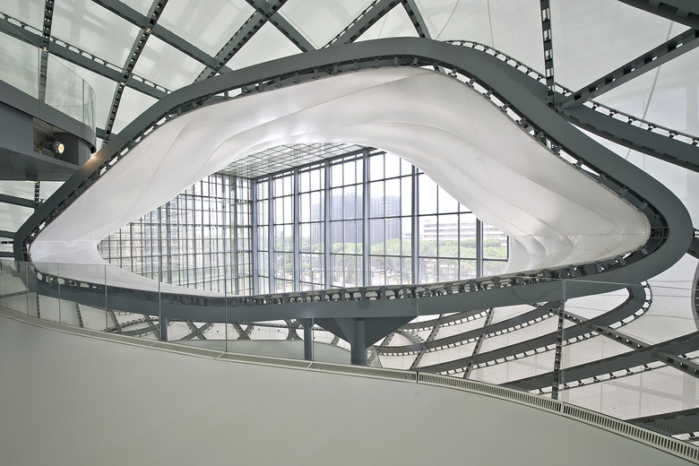 Massimiliano and Doriana Fuksas worked on the New Convention Center in Rome's EUR district from 1998, when they won a competition for its design, until October 2016, when it officially opened. Most striking is the Cloud suspended within the glass box exterior. The engineers at formTL oversaw the membrane covering the Cloud's steel structure.