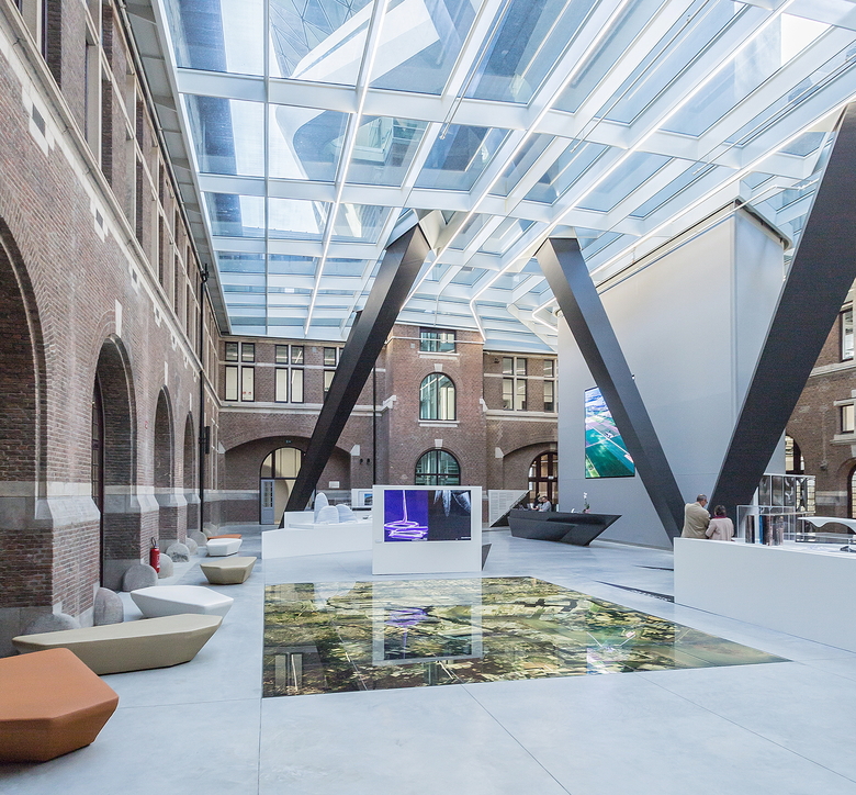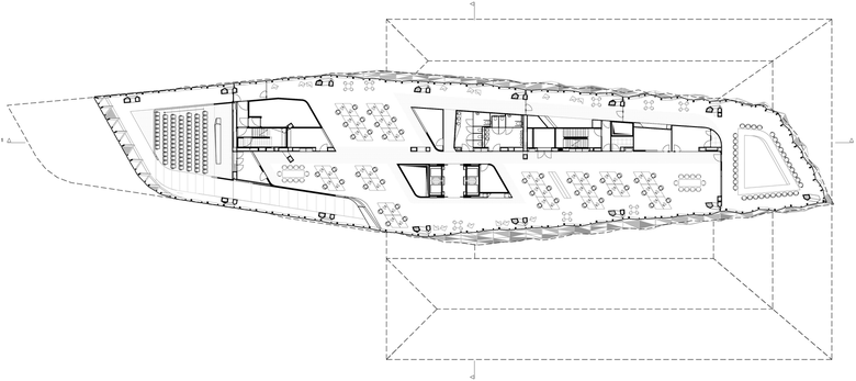 The addition's three-dimensional façade was one of the project's biggest challenges. The special design consists of triangular facets to make the complex form possible. ZHA supplied parametric reference points for the nodes so Groven+, the façade contractor, could assemble the components; important, considering no two pieces were the same. The curtain wall manufacturer, Schüco, tested the profiles for acoustics, air, and water impermeability, whose requirements were very high due to the location. "The test results were not only taken into account during technical planning, but also integrated into the design," assured Etienne Clinquart, director of Groven+.