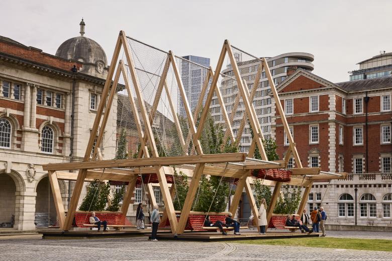 AHEC, a trade association for the American hardwood industry, is no stranger to the London Design Festival, having installed ambitious and innovative timber structures as part of it for years. These include The Smile, Alison Brooks Architects' aptly named walk-in sculpture in 2016, and MultiPly, designed by Waugh Thistleton Architects in 2018 and built from prefabricated tulipwood. The latest is Vert, a collaboration between AHEC, industrial designer Stefan Diez, and the urban greening specialists at OMCºC. As in previous AHEC installations at the festival, Vert explores the potential of engineered hardwood in form, function, and sustainability, creating what Diez calls a “Greening Machine” that strives to make urban spaces more harmonious and pleasant.
