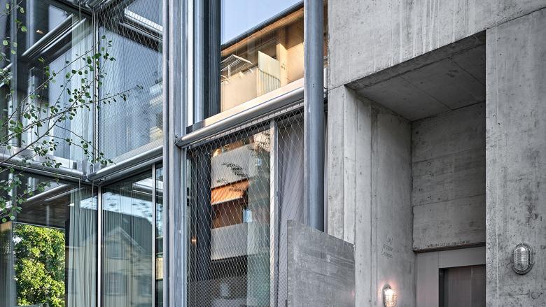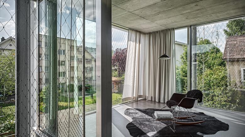 In Winterthur, northeast of Zurich, Wild Bär Heule Architekten did not have stunning lake views to contend with. Quite the opposite, the four-story Winterthur Residential Tower sits in the middle of a block dense with houses and apartment buildings. Although hemmed in on all sides and limited to a 400-square-meter footprint, the four full-floor residences have completely glazed exterior walls (minus the concrete stair tower). The architects were inspired by Mies van der Rohe's Farnsworth House in Illinois; just as Ms. Farnsworth needed curtains for protection from the sun and prying eyes, the residences in Winterthur restrict the same through exterior roller shades and interior curtains.