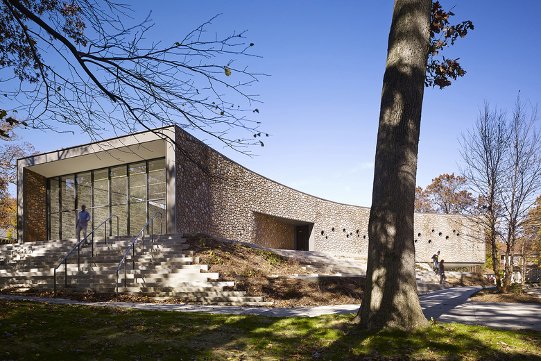 For the Arcus Center for Social Justice Leadership at Kalamazoo College in Michigan, Studio Gang Architects uses a traditional yet obscure masonry technique to give the trefoil-shaped building its distinctive appearance.
