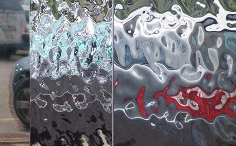 EXYD developed the M product line in 2009 with the intention of making something that looked like the reflections of gently rippling water. Given the variations that occur in the surfaces of water bodies, the manufacturer developed varied degrees of fragmentation, as can be seen below. In addition to ceilings, the panels are used for walls, facades, guardrails, street furniture, and landscapes. They can be mounted via hooks, screws, dowels, or glue. The panels, available in various colors, can also be perforated for acoustical applications.
