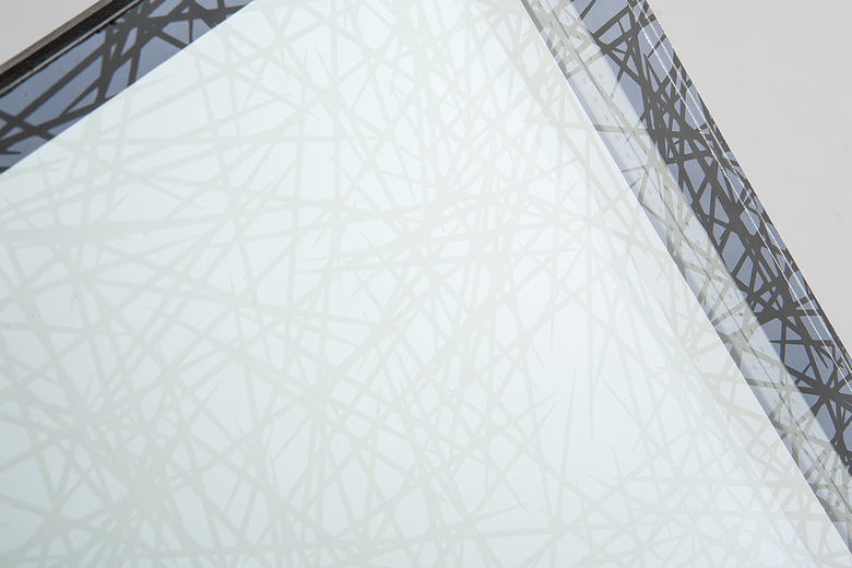 This pattern is applied to the insulated glass panes as two frits: an outer macro layer in light gray that echoes the birch bark and a standard dark gray line pattern on the inner layer. The greatest distance between the horizontal lines on the outer layer is 2 inches. This dimension follows the "2 x 4 rule," which is based on studies that determined birds can "see" glass with horizontal stripes spaced 2 inches apart or vertical stripes spaced 4 inches apart. Seeing the option of vertical stripes as too prison-like, Olcott went with horizontals and found a creative way of incorporating them into the design.