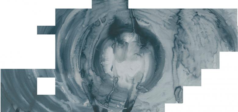 A pivotal moment for Adrià involved a large watercolor drawing (below) that the designers decided to scale up and apply to the floor covering the entire space. Like a hurricane seen from a satellite, the watercolor's apparent circular movement serves as a means of orienting the walls and furniture in the space. The designers worked with Neolith, a sintered stone product made by TheSize, to create a replica of the drawing across the whole floor as well as to walls, bathrooms, kitchen worktops, cabinetry, and kitchen hoods. Sintered stone slabs are made up of clays, feldspar, silica and mineral oxides that are produced through a high-temperature/high-pressure sinterization process. Although fairly common in the industry today, the green and blue tones of Enigma are unusual hues for sintered surfaces. In order to match the watercolor's colors and the other materials on the project, Neolith used their proprietary diginal printing decoration technology.