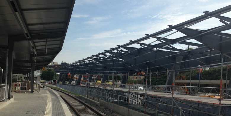 Construction site seen from the train platform: The supporting structure was easily built as a steel skeleton. (Photo: pape + pape)