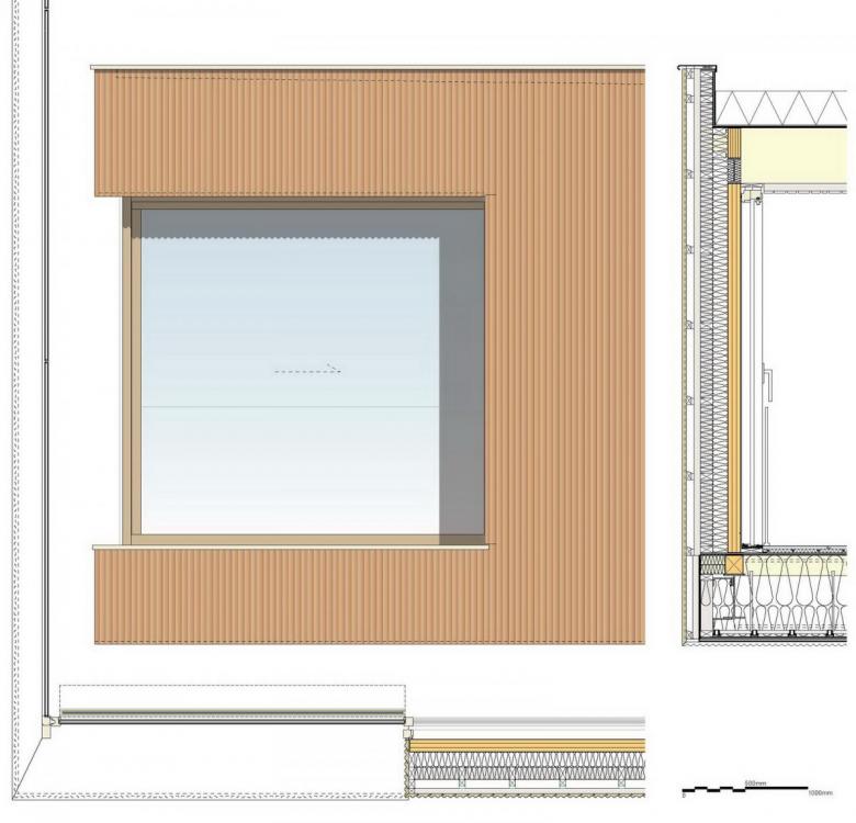 Corner window elevation, section, and plan detail (Drawing: dRMM)