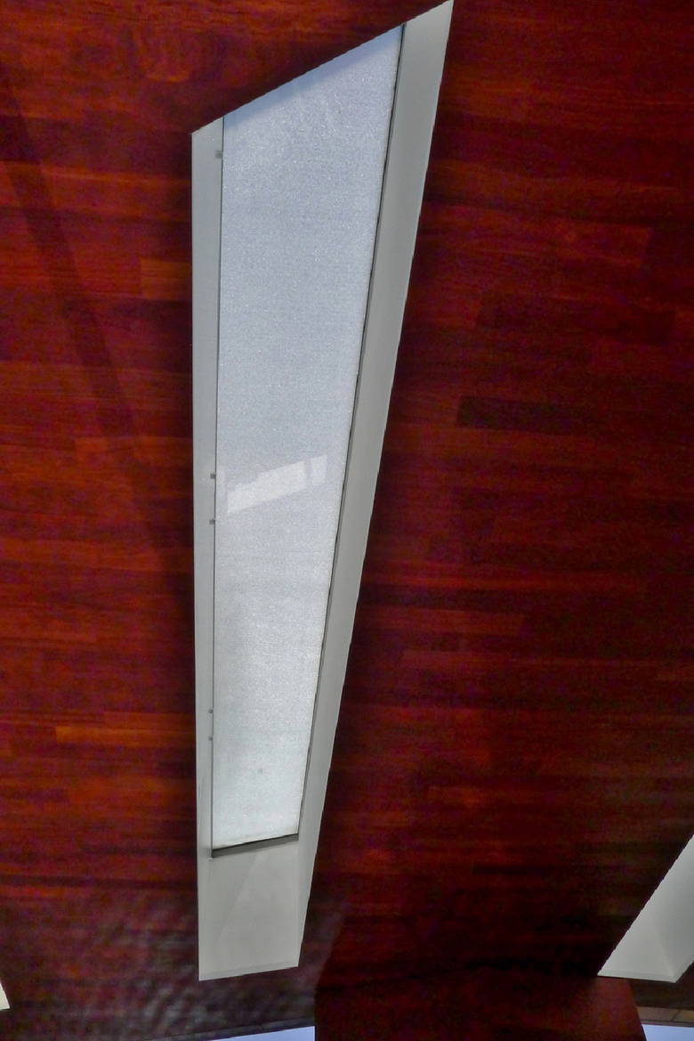 If supply of natural light is more important than transparency, as in the galleries of the Holl project, then KAPILUX from German manufacturer Okalux is a good alternative. Countless translucent (or optionally white) capillary scatter the sunlight and throw it into a room at the same depth; the light that would otherwise only partially illuminate the room diffuses evenly. The system also provides protection against excessive UV radiation, but without considerably influencing the color spectrum—the illuminated artworks retain their natural color. Another positive aspect of the product is the very good thermal and sound insulation properties of the capillary plates.
