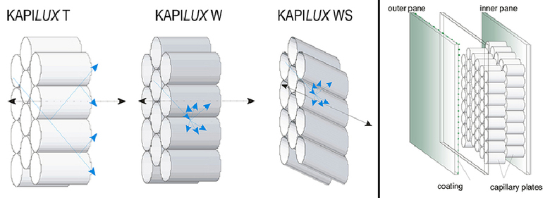 KAPILUX is available in three versions: transparent (T), white (W) and with an inclined capillary (WS). Image: Okalux
