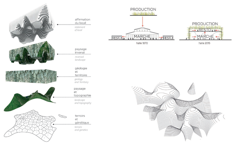 France and the fine art of dining are inseparable. Haute cuisine, the Michelin Guide and Paul Bocuse are a few of the internationally acclaimed things to come out of "the Hexagon." At last year's World Expo in Milan, France used the slogan to defend its image as a country at the forefront of global food culture. Vive la France!  Just as French chefs base their cuisine on the source of their ingredients, the 2014 competition-winning design by Anouk Legendre and Nicolas Desmazières of XTU asserted that the French pavilion should deal with the agricultural landscape and the archetype of the market. "Les Halles," as the famous Parisian markets became known, started in the mid-18th century by Victor Baltard. Inspired by the Crystal Palace at the Great Exhibition in London in 1851, the halls were like pavilions of light, bringing wonder to the experience of food shopping. This archetype led XTU to design a compact pavilion with everything of necessity under one roof, its shape inspired by the hexagonal shape of France's borders.