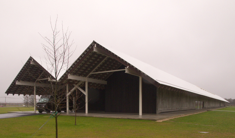 A recently published study (PDF link) from the Lighting Research Center at Rensselaer Polytechnic Institute on "glazing with integral honeycomb baffles" uses the Parrish Art Museum as a case study. Researchers from the center's DELTA (Demonstration and Evaluation of Lighting Technologies and Applications) program field evaluated the effects of the honeycomb baffles, a material that provides clear views when looked at directly but appears the color of the baffle (typically white) when seen from an oblique angle.