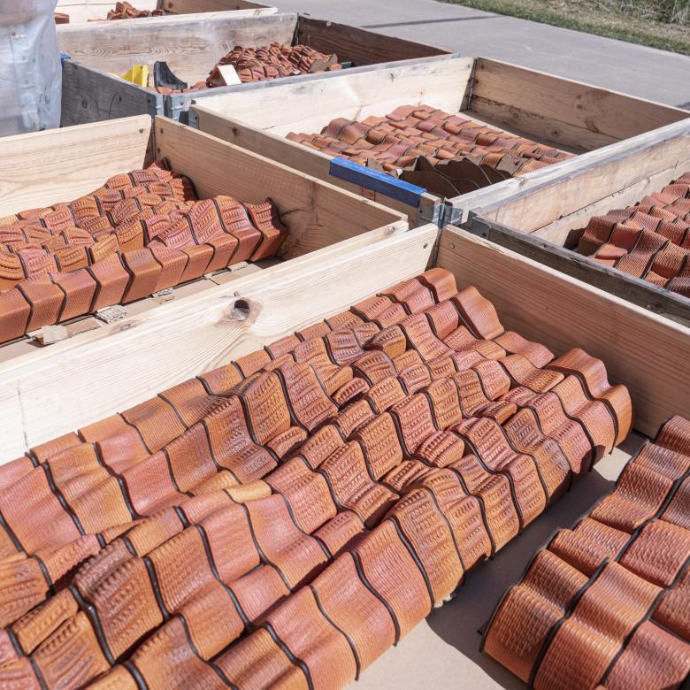 The bricks before they are installed on the facade. (Photo: Studio RAP)