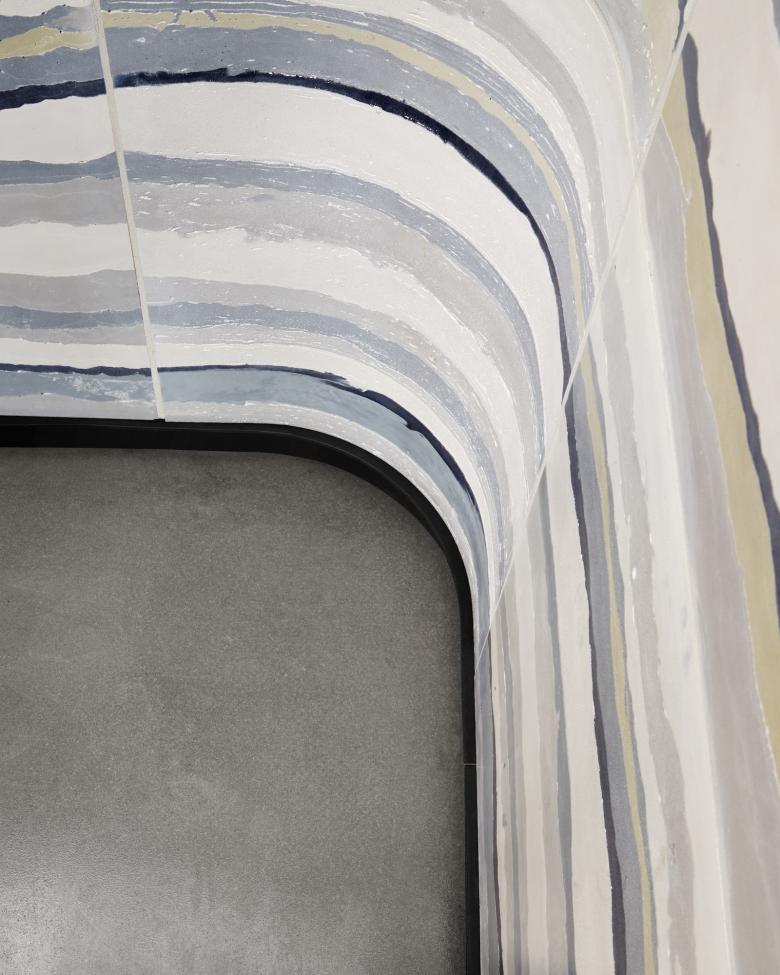 Explaining the design of the precast concrete walls, Ninivaggi said that at some point in the process "the whole design team became hooked on the idea of using rammed earth." Such an application in New York City is rare — if not nonexistent — something the team quickly learned after some phone calls and research: "We realized that not only would the climate in the Northeast likely not allow for rammed earth to be feasible," Ninivaggi continued, "we could also not find anyone locally experienced with rammed earth construction."