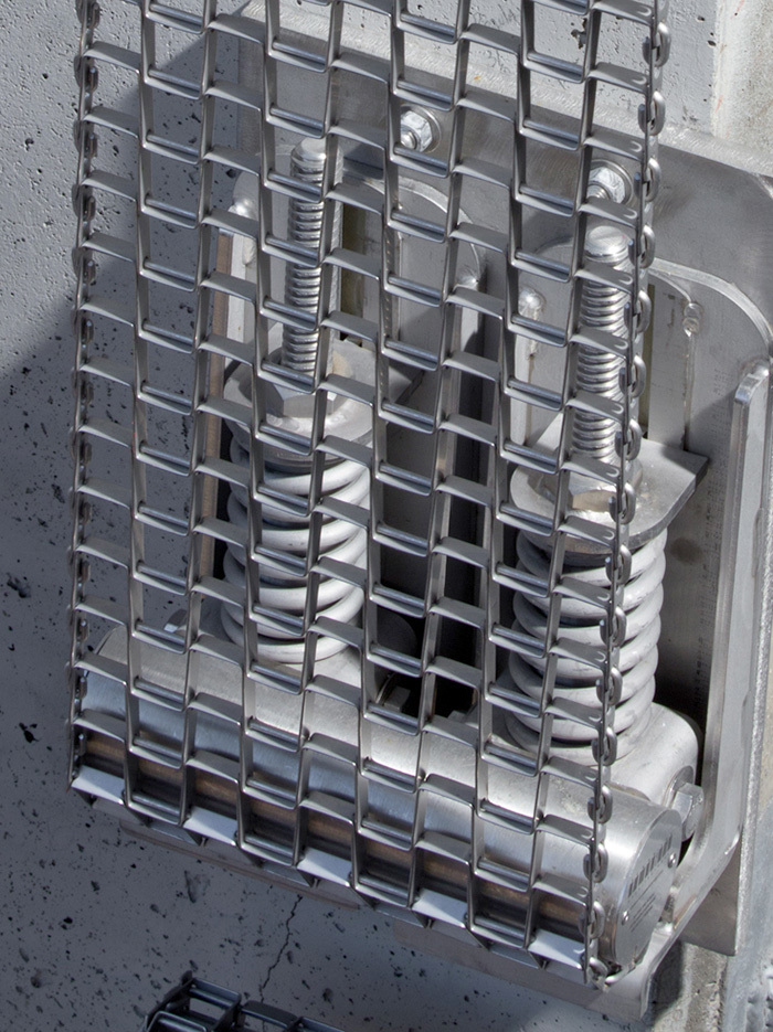 Attachment of mesh at parapet and green roof. (Photo courtesy of Cambridge Architectural)