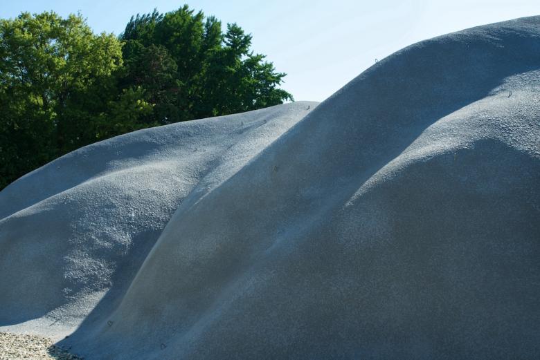The concrete was finished by applying waterproof paint and spraying the roughest Jollipat coating on top of it. It looks like Uluru / Ayers Rock in Australia.