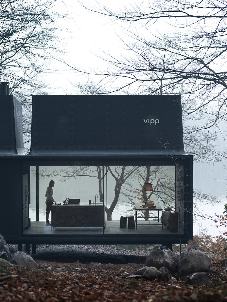 Architectural Solutions fitted the Vipp Shelter with PanoramAH! Series 38 double-glazed sliding windows in a slim 20mm profile on a two-track system. According to their literature, the system, "offers optimal insulation [and] a view with minimal interference and maximum exploitation of natural light." The choice of product is a logical one, since with the Vipp Shelter, perched on stilts in a forest landscape sloping to a nearby lake (or wherever the Vipp lands), it's all about the view.
