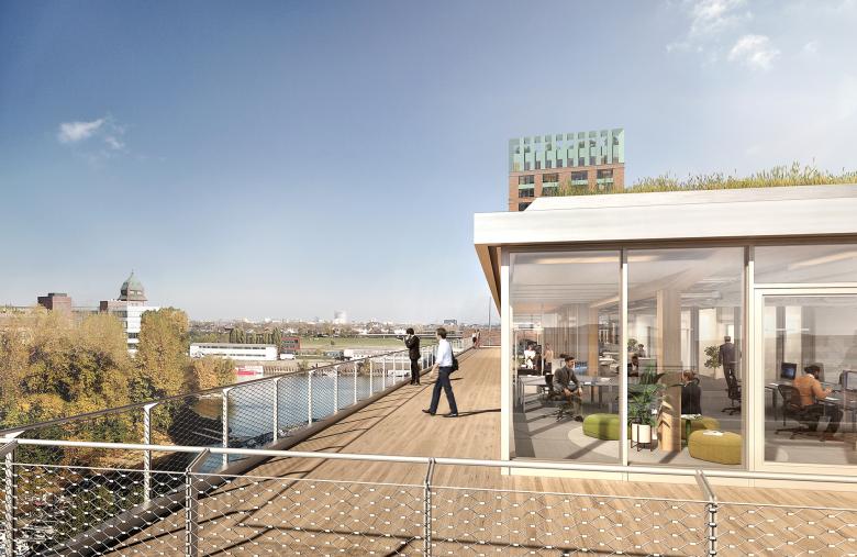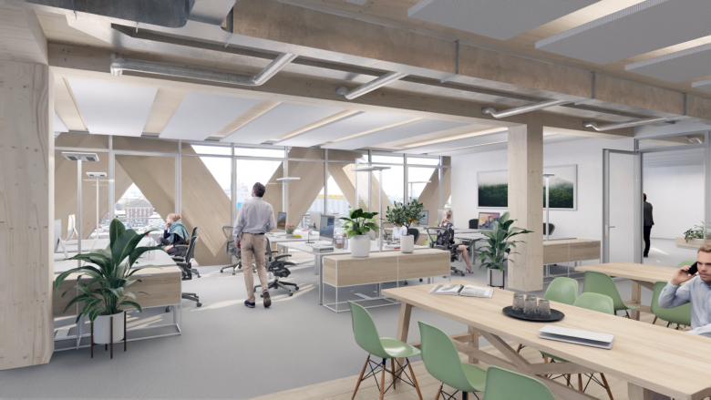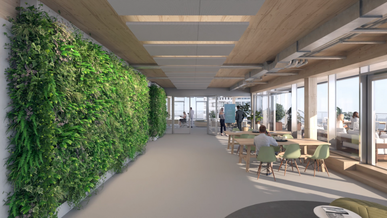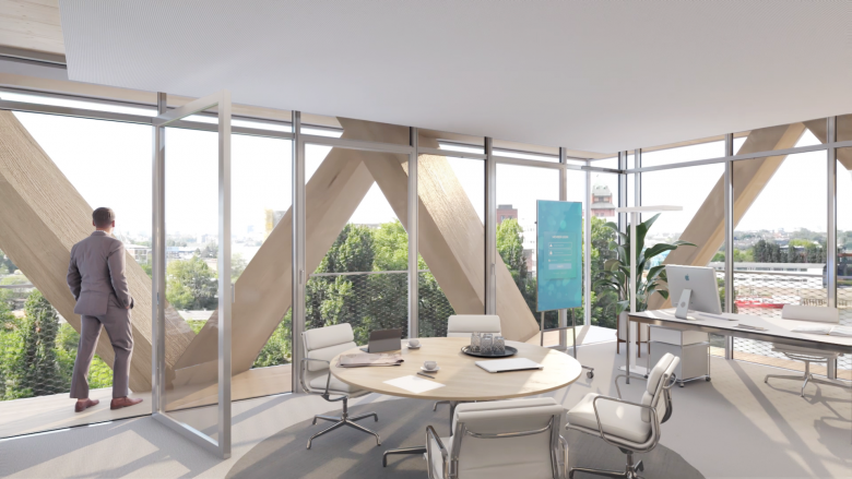And since you ask specifically about The Cradle, that’s basically what we did there. The interior design is modular to ensure great flexibility in use. It was also important to us to create a special atmosphere. That’s why we paid special attention to the issues of comfort and air quality. Wood is visible everywhere in the building. Thanks to the special façade construction, which simultaneously provides solar protection, the view of the harbor can always be enjoyed – unlike in the surrounding office buildings, where the shading devices are lowered and dark interiors are created during the summer months. Sophisticated technology, but also low-tech solutions such as green walls, ensure high indoor air quality. We have also avoided toxic chemicals such as carpet adhesives and PVC.