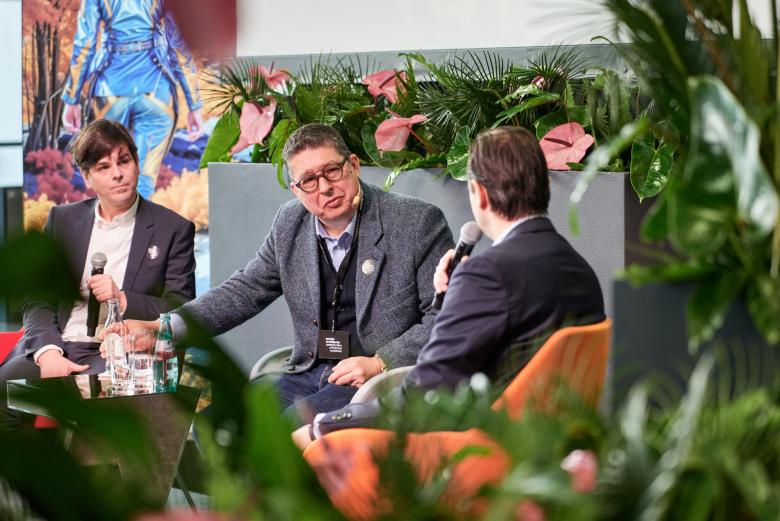 Hospitality Tandem by World-Architects on Monday at the Trade Fair: How the close collaboration between hoteliers and architects can create a satisfying guest experience in practice was explained by (left in the photo) architect Sebastian Pajakowski (Design Director, FRANKEN Generalplaner, Frankfurt am Main) and hotelier Björn Rapanis (lyf Champion, lyf East Frankfurt, Frankfurt am Main). The conversation and the subsequent tour were moderated by World-Architects CEO Renato Turri (center). (Photo: © World-Architects.com)