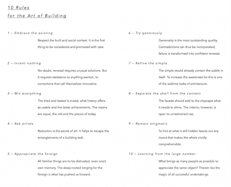Rules for the Art of Building: The 10 Rules for the Art of Building were presented by Laurids Ortner on 24 April 2006 in the auditorium of the Düsseldorf Art Academy. The title at the time was: 10 Hints for Better Architecture