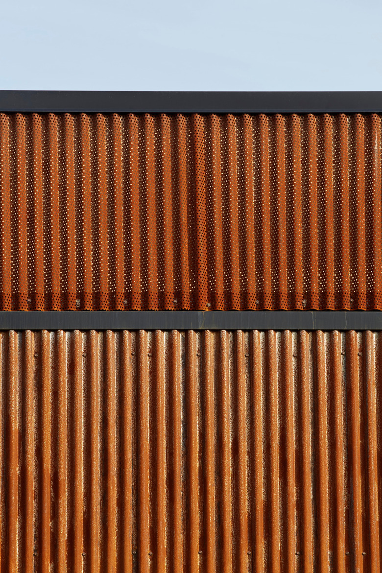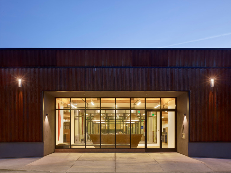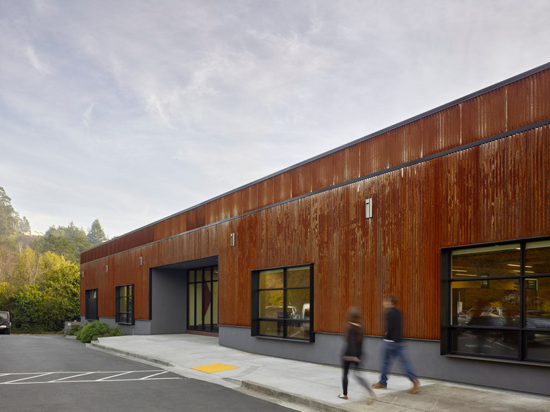 The building has been re-skinned in weathered corrugated metal panels. (Photo: Bruce Damonte)