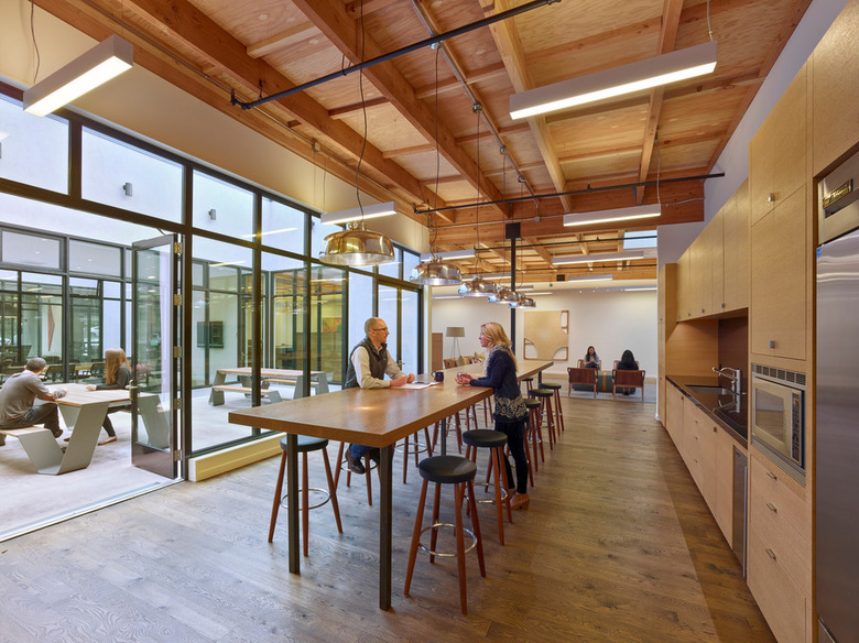 Open office bullpens are defined by steel partition walls. (Photo: Bruce Damonte)
