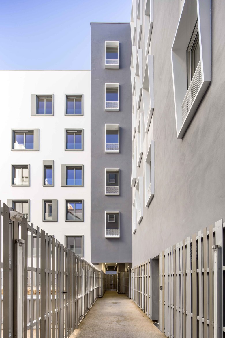 The buildings created have their own address : 20, 22 and 24 Basfroi street and their input, their mailboxes, their common premises. This encourages ownership and identification of housing for its inhabitants. From the standpoint of customs, it provides good functionality.