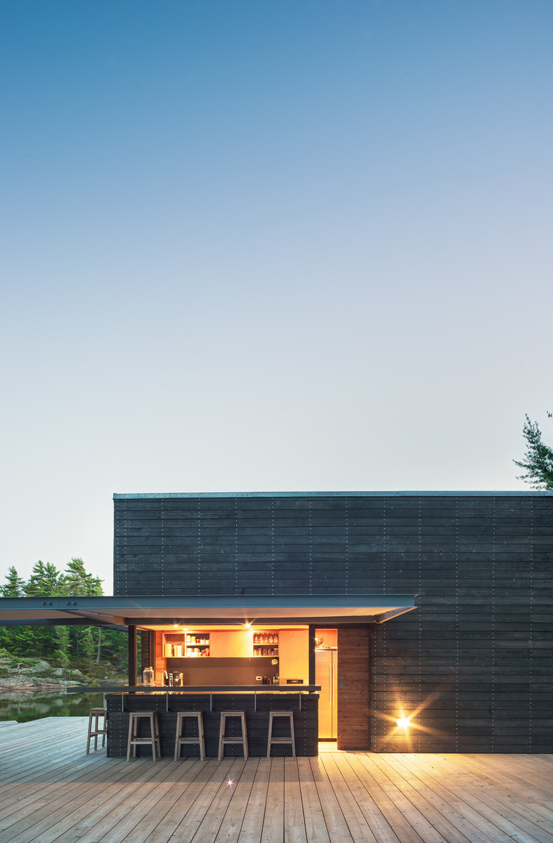 Through careful form-making and the use of rustic materials, the project responds gently both to the natural and cultural context of the area, where historically built-form yields to the power of the landscape with its exposed and glacially carved granite and wind swept jack pines.