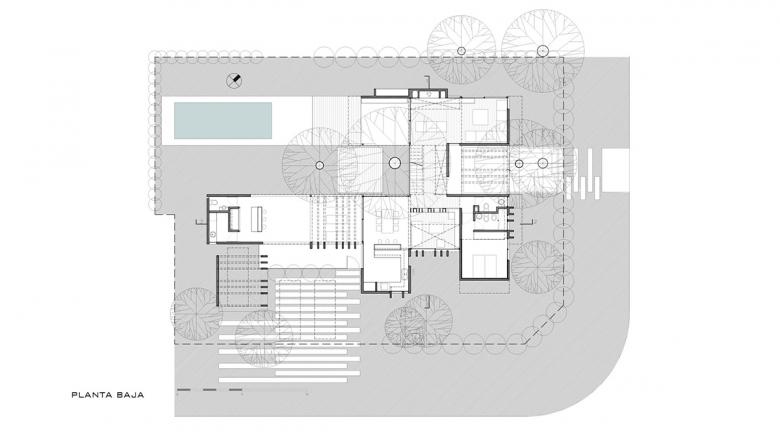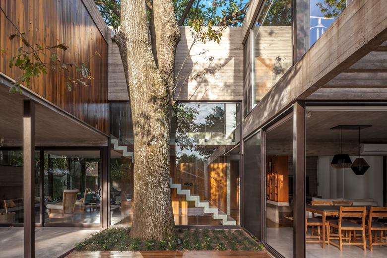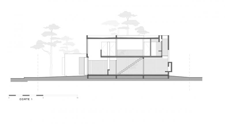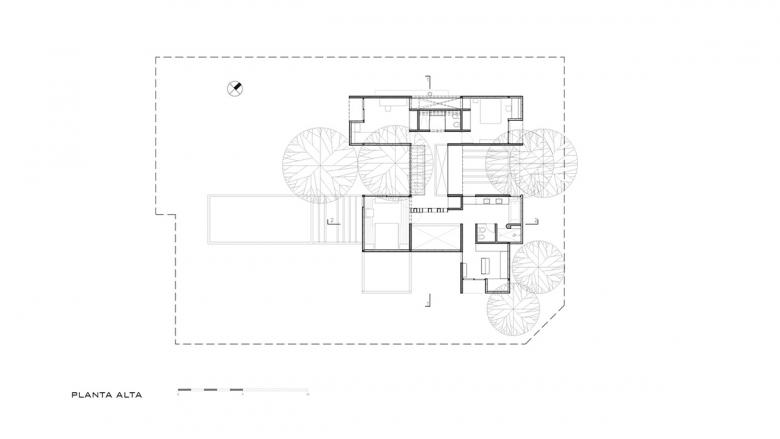 We thought then that the house had to develop accommodating itself in the free holes left by the trees and wrapping them to make them part of the proposed spaces.