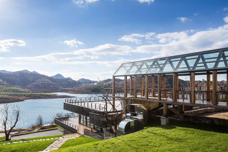 Regarding materials, SYN Architects used local elements such as firewood, pebble stone and wood to transform the buildings of the project. The terrace of the hotel’s façade is surrounded by a vertical arrangement of wood, providing a strengthened feeling of "natural wilderness." Pebble stones form simple roads and natural walls, while wood is used as the main material that, altogether with the landscape, delivers the ancient feeling found in Chinese landscape paintings. From the perspective of Zou Yingxi, such materials not only reduce the cost of the project, but also reflect the “genetic match” between architecture and the environment. "A building doesn’t have good or bad elements, it only has suitable and not suitable ones. The Creek Park Hotel is suitable for this site, and 'grows' its own buildings that along with it will either exist or come to an end, together as one."