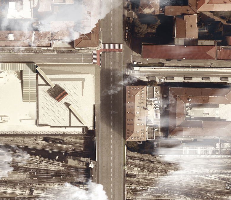 In order to highlight the presence of the memorial to the passers-by, it is also important to understand its relationship with the urban context. The competition site is a square which emerged from the construction of the new railway station. The result is an area which is not designed for any specific functions, inclined to a new identity yet to be shaped and opened to the passage of people.