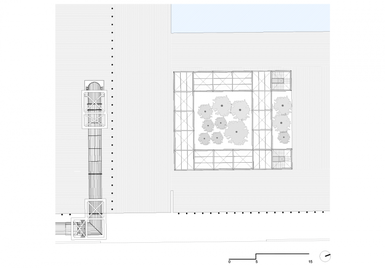 Belvederes, footbridges, arcades, stairs and alcoves offer a broad range of situations for experiencing the interiors of these structures. Exposed to the climate, lengthwise they create empty, semi-open mezzanine spaces of diverse qualities and uses. There are a number of areas for sitting, equipped with benches with backs, which enable visitors to really inhabit these places, relaxing out in the open, gathering and sharing, while still being protected.