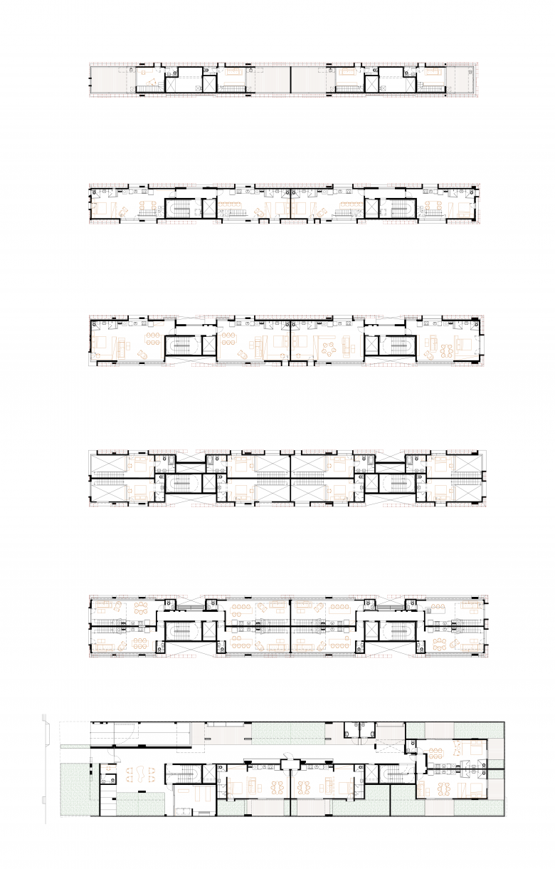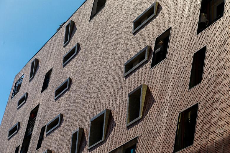 The skin covering the building also provides thermal comfort to the units. Away from the masonry, it provides shading of the fences and good ventilation through a mattress of renewable air. From that perspective, sustainability guided a large part of the project’s choices. Due to the reduced dimensions of the land, and minimal rooftop space for installing equipment or photovoltaic panels, it was necessary to find a solution that would avoid the entry of heat, to the detriment of an air conditioning project.