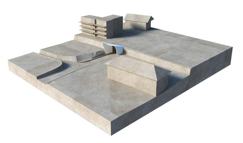 The project presents an inventory of complementary elements integral to the system of tunnels. As new entries, the central junction tunnel portals have been conceived as expressive figures whose raised heads emerge from the buried, unseen networks of roads serving as mediators of the disparate speeds and scales of the stratified urban context.