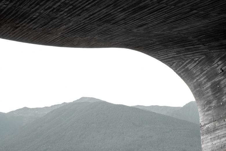 The concrete work of the new addition is made of aggregates and excavation materials drawn from the ongoing construction site of the 64km Brenner Base Tunnel traversing below the Alps from Innsbruck, Austria, to Fortezza, Italy. Together with exposed concrete, larch wooden acoustic barrier walls and Cor-ten steel ventilation chimneys, the portals constitute important sites of architectural design: they lie at the intersection of landscape, infrastructure and mobility. These interventions mark the threshold between below ground and above ground,  becoming part of the urban landscape of Bressanone, and also defining the fleeting, motorist experience.