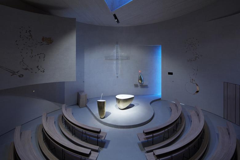 The interior is poeticaly minimalistic with modest decoration. Historical churches are full of visual information – the entire story is written in paintings, sculptures, in decorations. For example, interiors in Baroque church were completely descriptive to give illiterate people an idea about Jesus’s life. Nowadays we are overwhelmed with information and we tend to search for a quiet place of meditation and realizing own inner being.
