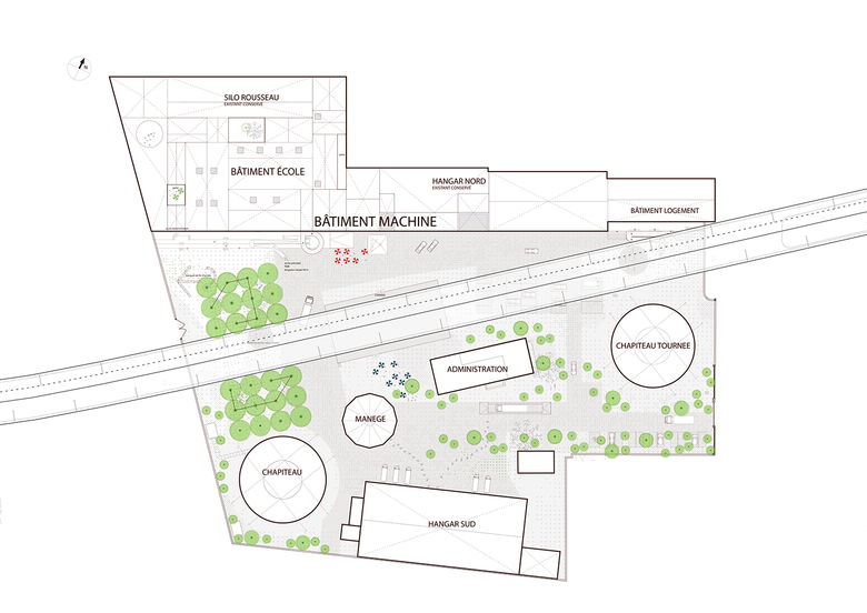 - creating a new building, the "school building", between the Rousseau silo and the northern hangar and renovating the existing silos;